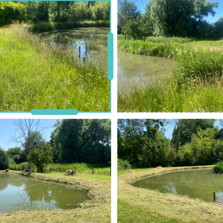 Débroussaillage sur l'ensemble du périmètre de l'étang, nettoyage et évacuation des végétaux.